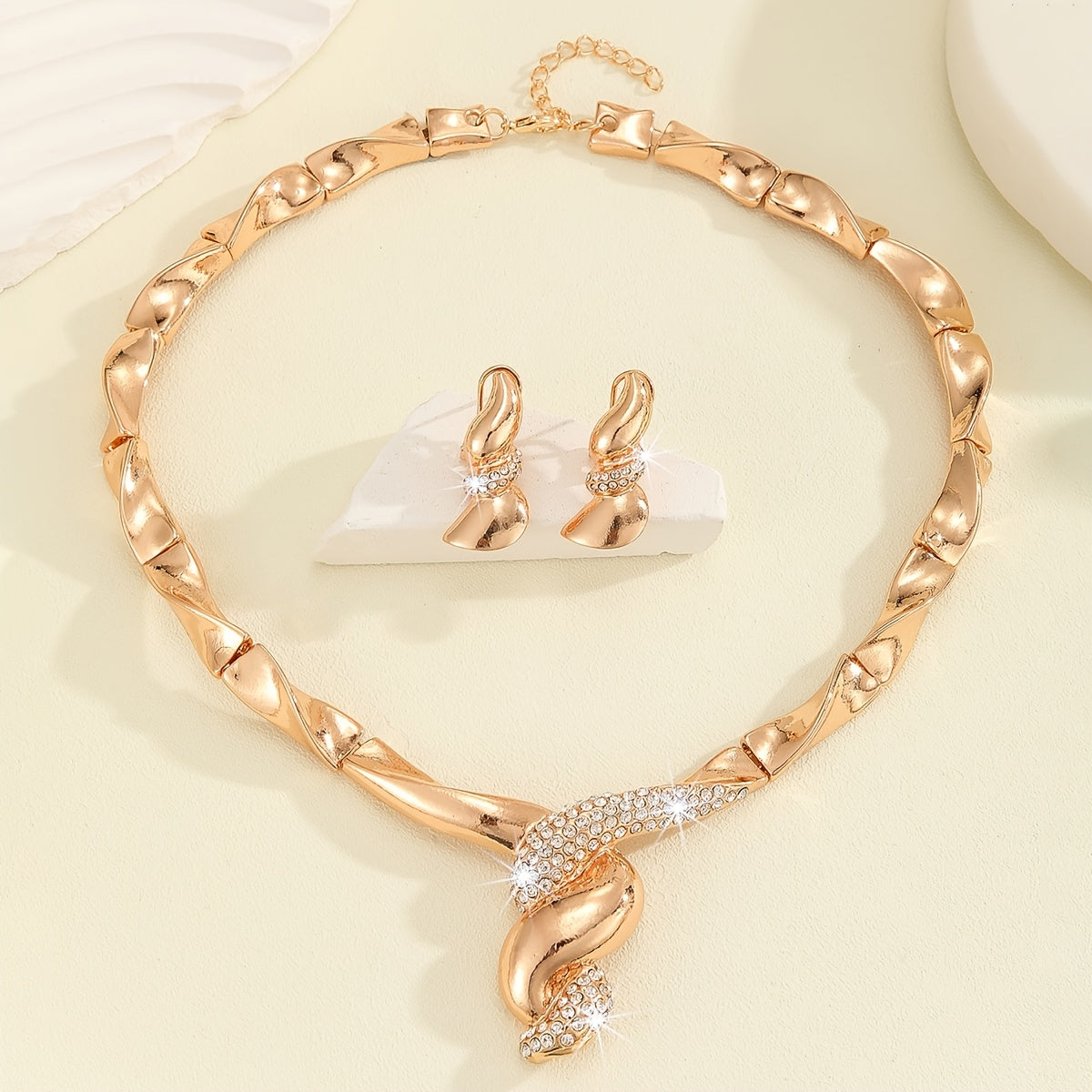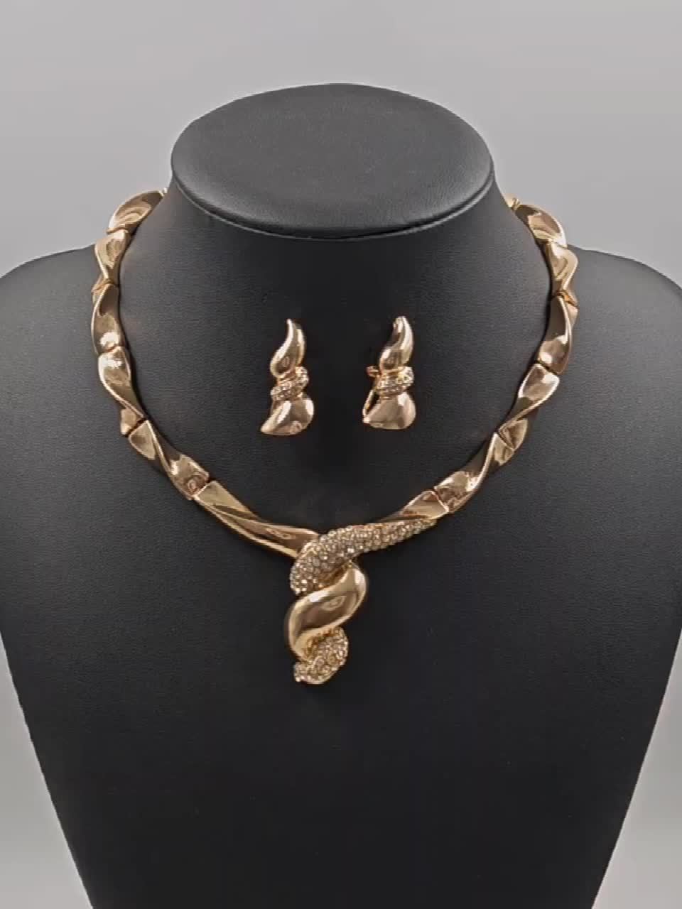 Diseño moderno con un toque de elegancia clásica, este conjunto combina armoniosamente aretes, anillo y collar en formas circulares que evocan unidad y sofisticación.