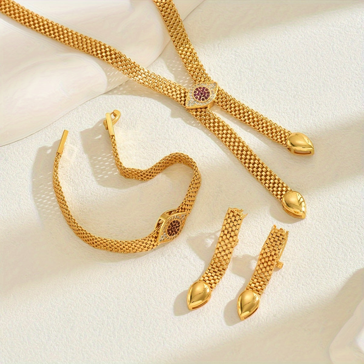 Perfecto para realzar cualquier look con un toque de distinción, este set está cuidadosamente elaborado y bañado en oro de 18 quilates, garantizando brillo, resistencia y sofisticación.